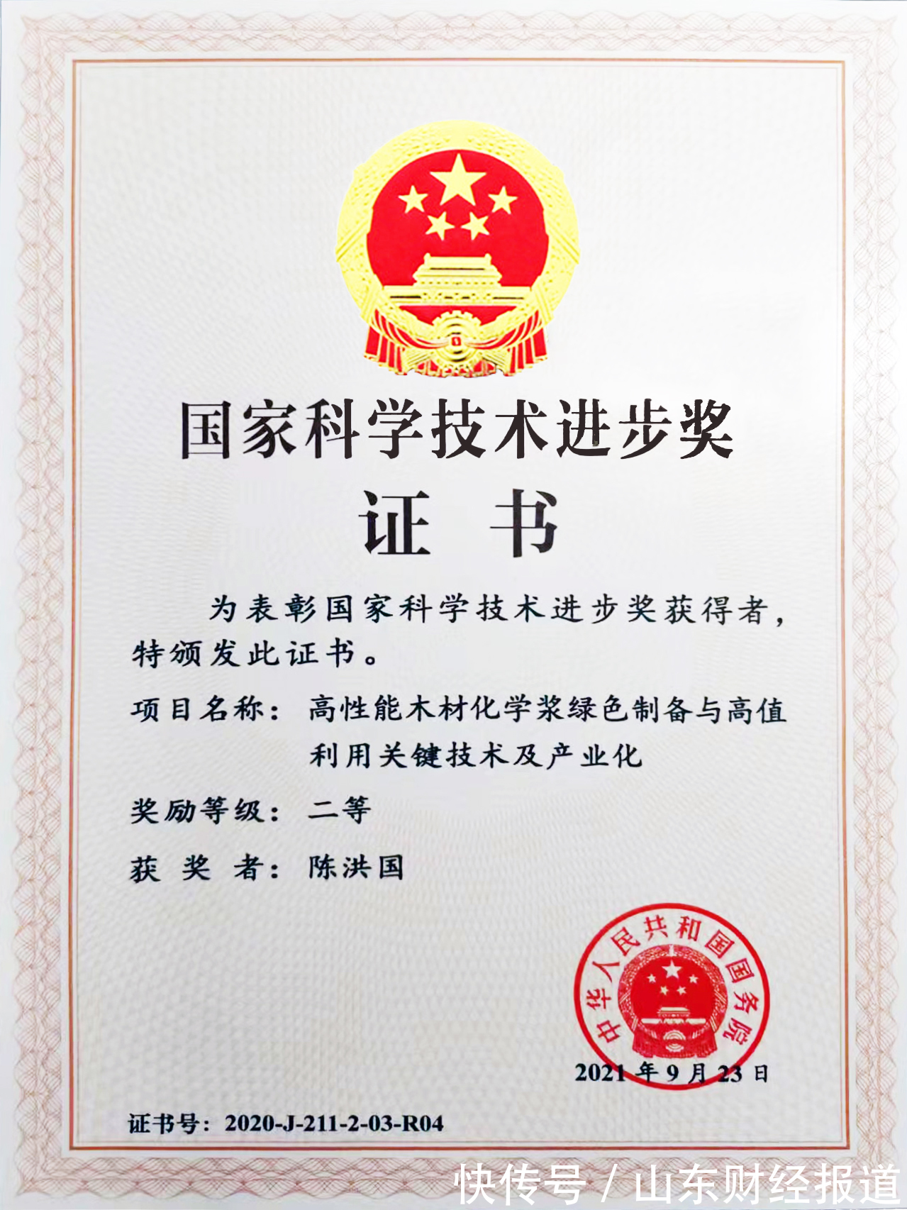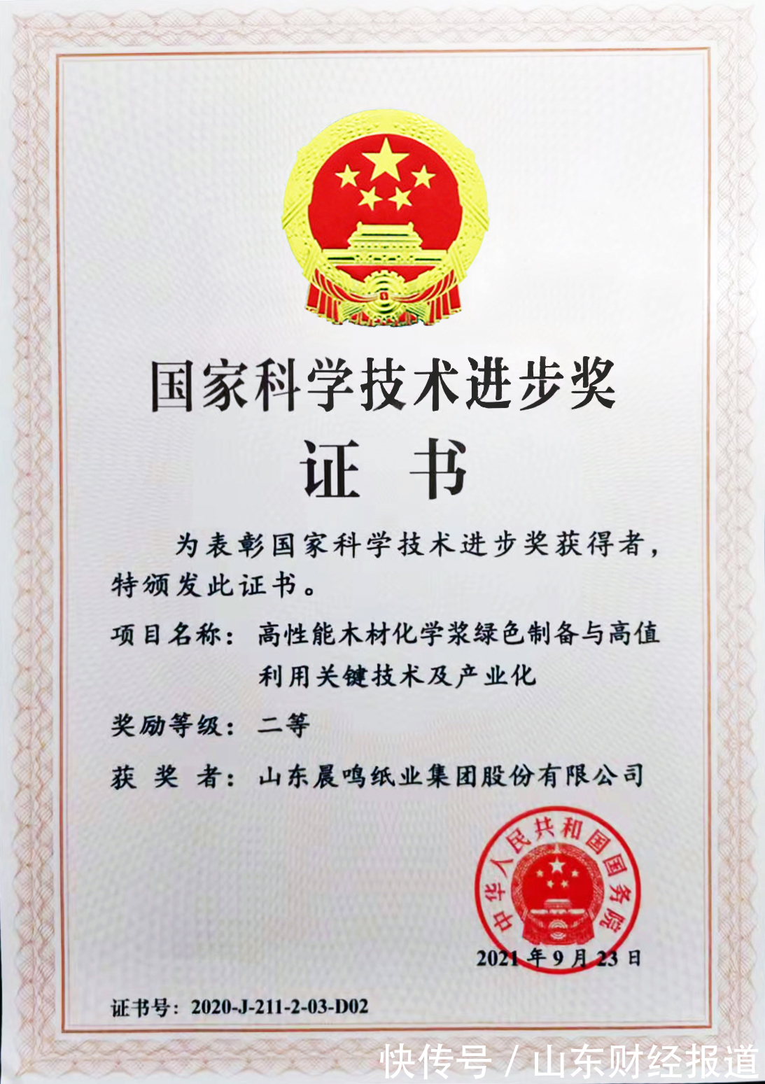 晨鸣纸业荣获2020年度国家科学技术进步二等奖为